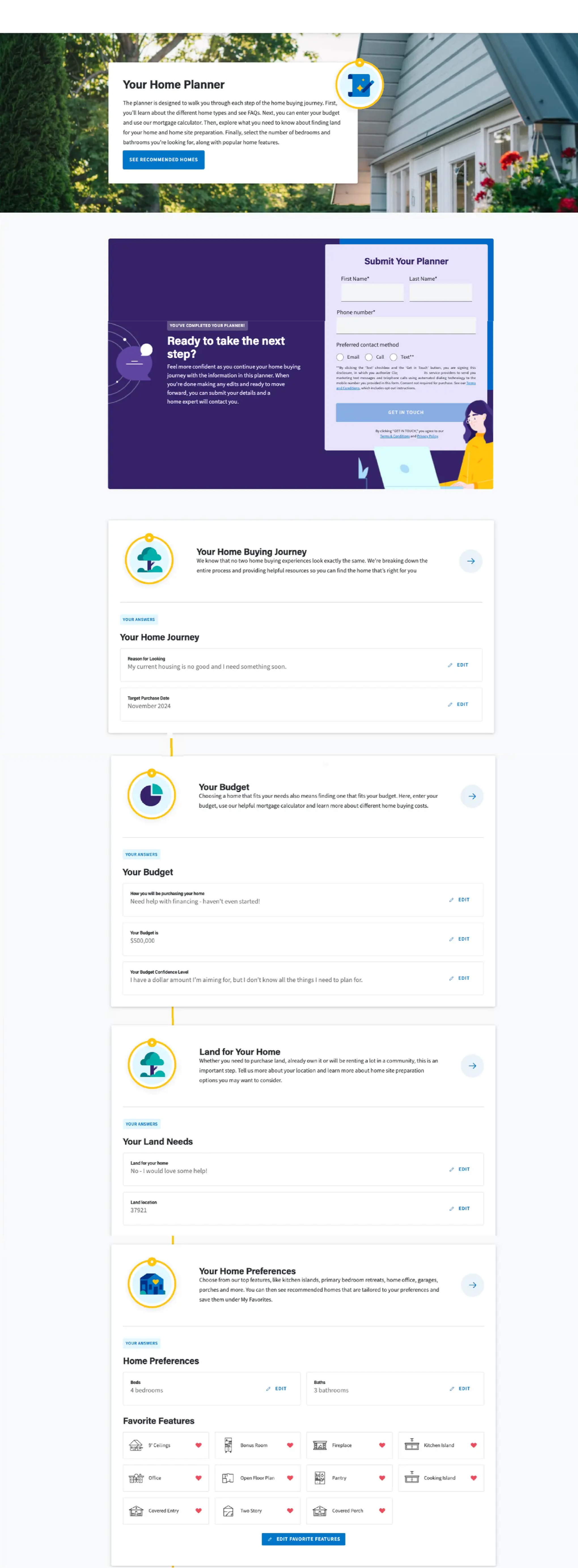 One of our key design principles was to give customers a sense of ownership and control from the beginning of the sales journey. By creating a guided planning tool, we accomplished this in addition to giving home consultants a jump-start on the process of evaluating customer fit.