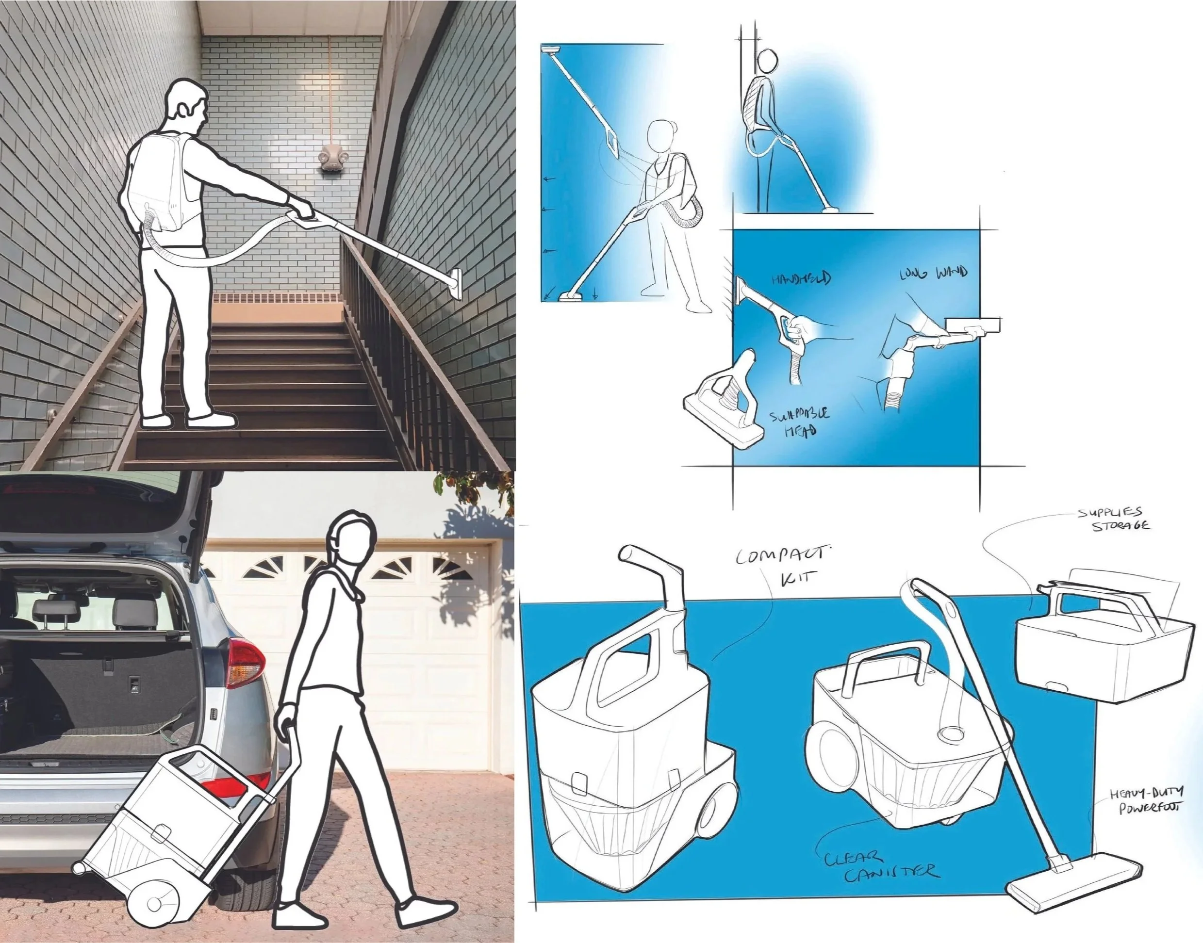 Our team was contacted by a global floor care manufacturer that was ready for a new product direction. After decades of fighting for market share with competing products, they were ready to find new customer challenges that were not being addressed by current products on the market. The design challenge was to deepen customer insights for both domestic and commercial product users and create 10 new product concepts that would pave the way for a new brand direction.